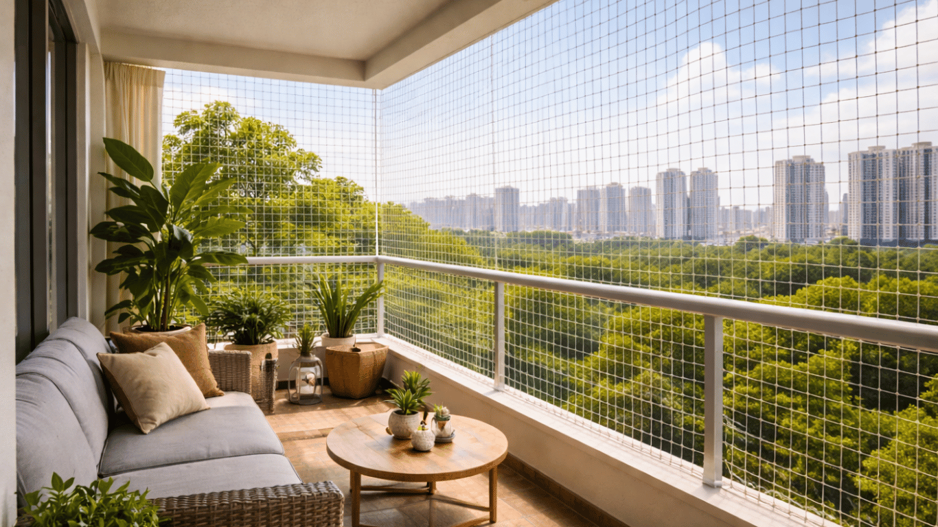 Balcony safety nets are designed to reduce the risk of accidental falls while keeping the balcony open and usable. They are especially beneficial for families with children, elderly members, and pets.
